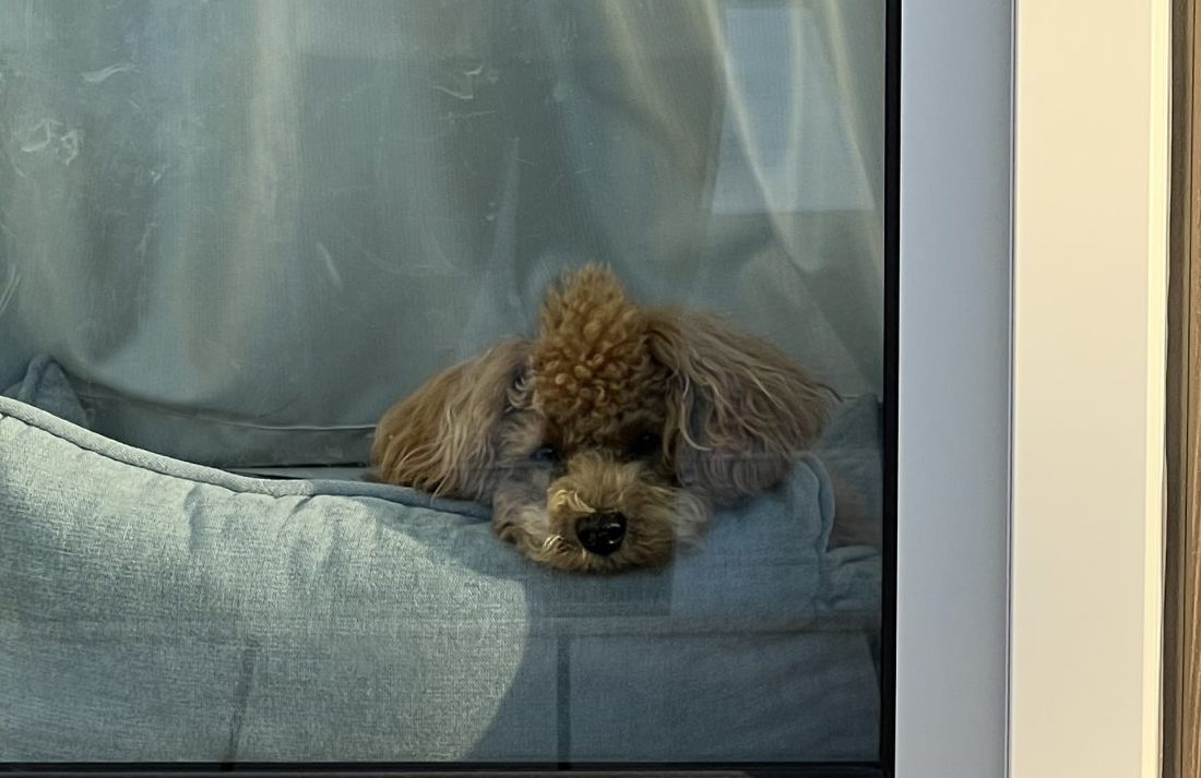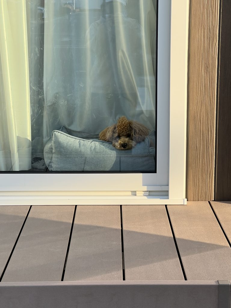 帰ってくるといつもこんな感じで待ってる(゚´ω`゚)窓が汚い(◍•﹏•)